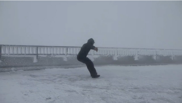 O monte Washington dispõe de um observatório meteorológico desde 1932 que é operado por voluntários entusiastas, que incluem Mike Dorfman e Tom Padham, os dois homens que se filmaram fora da estação para fazerem este vídeo incrível.