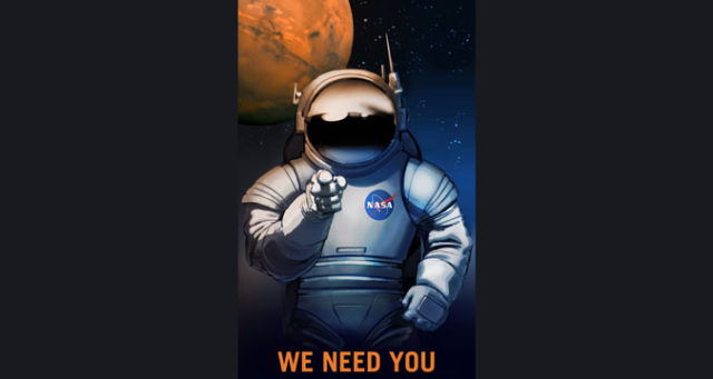 “SEJA UM MARCIANO! - Marte precisa de si! No futuro, Marte terá todos os tipos de exploradores, agricultores, inspetores, professores. . . mas acima de tudo VOCÊ! Junte-se a nós na viagem a Marte, vamos explorar com robôs e, um dia, enviar humanos. Descarregue um póster de Marte que fala consigo. Seja um explorador!” - diz o site da Nasa.