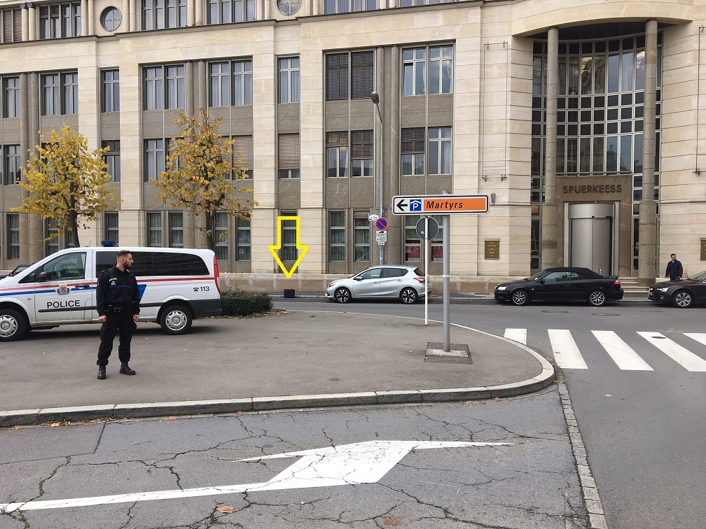 A polícia criou um perímetro de segurança junto a um edifício do BCEE no parque “Rousegaertchen” na rue Zithe na capital.