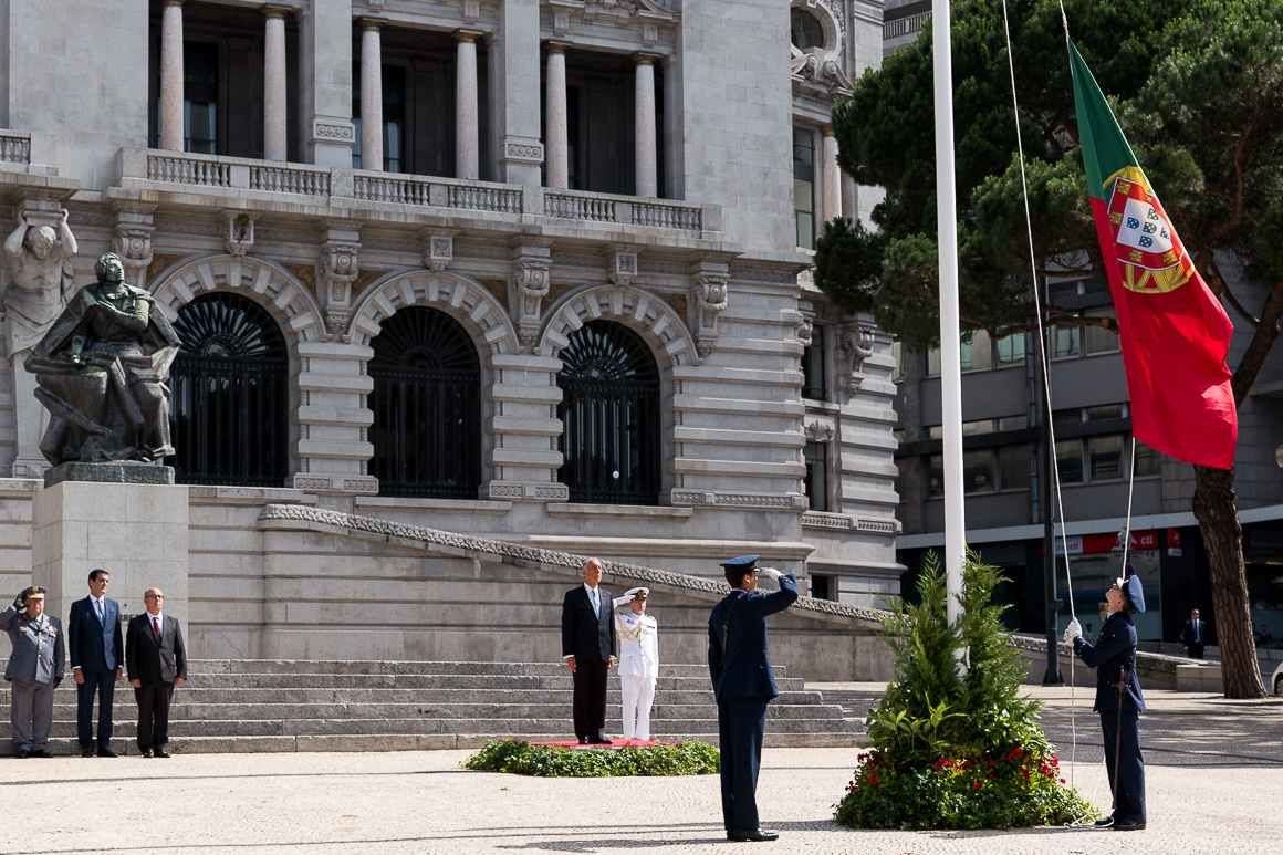 O Presidente da República recebeu honras militares pela Guarda de Honra, composta por cadetes da Academia da Força Aérea, e ouviu o hino nacional executado pela Banda da Força Aérea, enquanto a bandeira nacional foi içada bem no centro da Praça General Humberto Delgado, junto à Câmara do Porto, numa cerimónia a que assistiram dezenas de pessoas, concentradas sobretudo na Avenida dos Aliados.