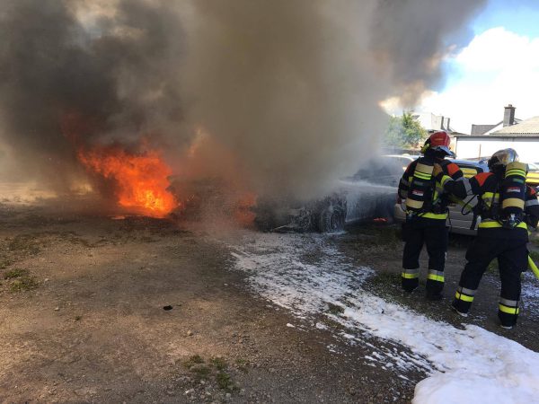 Quatro carros ficaram destruídos por um incêndio que dflagrou num depósito de veículos em Mondercange.