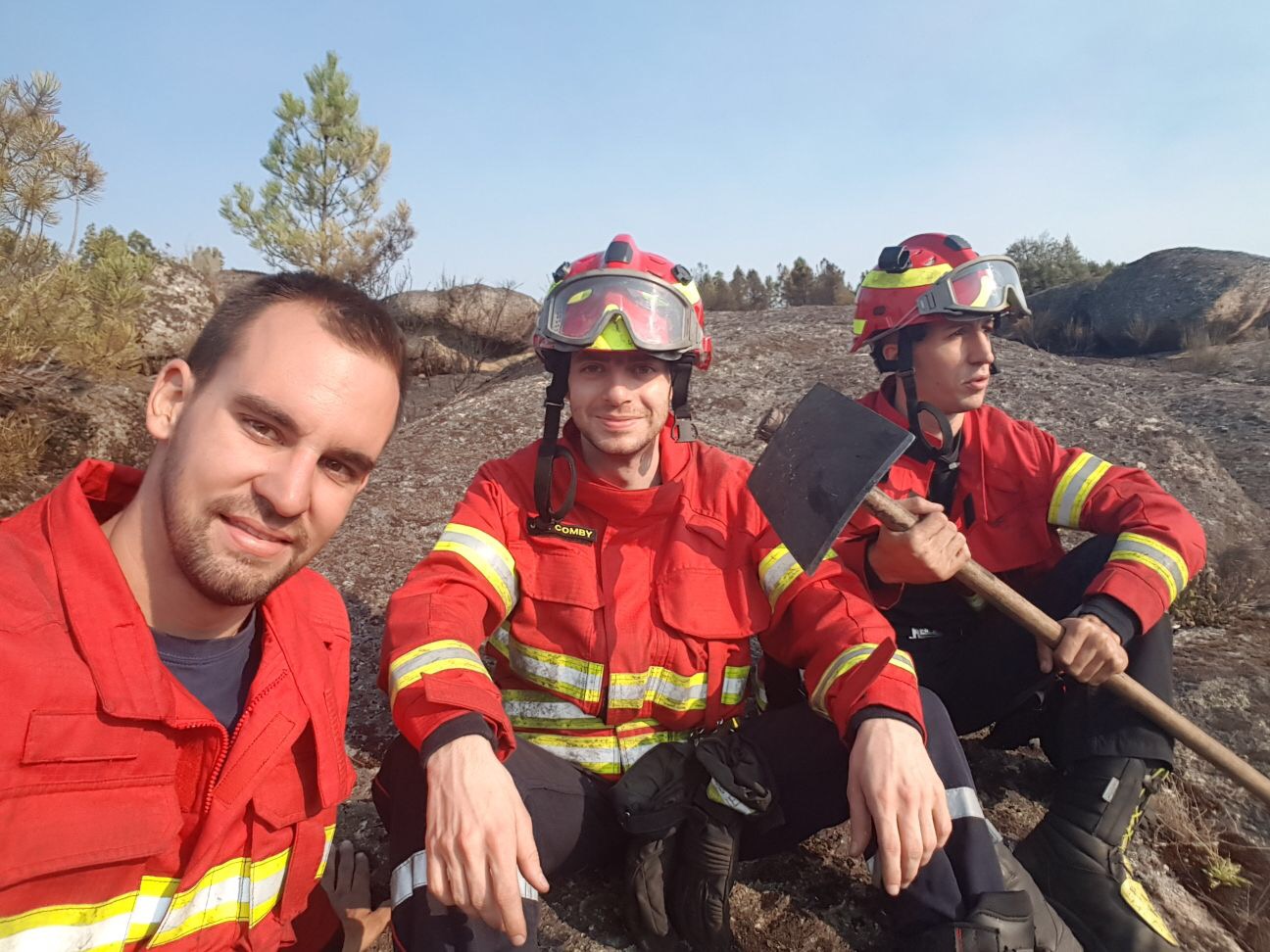 Benjamin Pitteloud, Jean-Gratien Comby, Gaël Fagherazzi e Sébastien Zurlo que fazem parte da corporação de bombeiros de Saxon estão ajudar os seus colegas portugueses no combate aos “terríveis” incêndios que assolam Portugal.