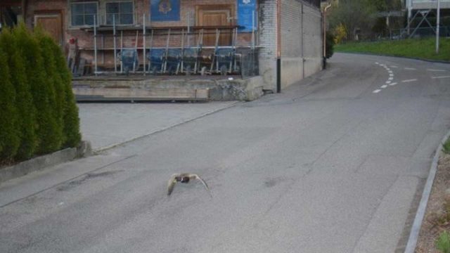 Exceder o limite de velocidade por 22 km/hora naquela zona da Suíça pode resultar numa queixa oficial da polícia, uma multa e o mínimo de um mês sem conduzir, por isso o pato teve sorte de ter conseguido voar dali para fora.