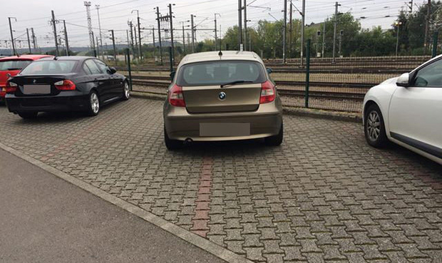 A foto demonstra mais um estacionamento insólito! Desta vez um condutor estacionou a ocupar dois lugares no P & R de Bettemburgo antes de apanhar o transporte público.