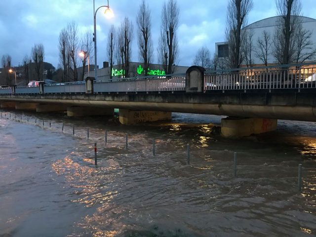 O rio Deich transbordou para os parques de estacionamento que se encontram inundados.