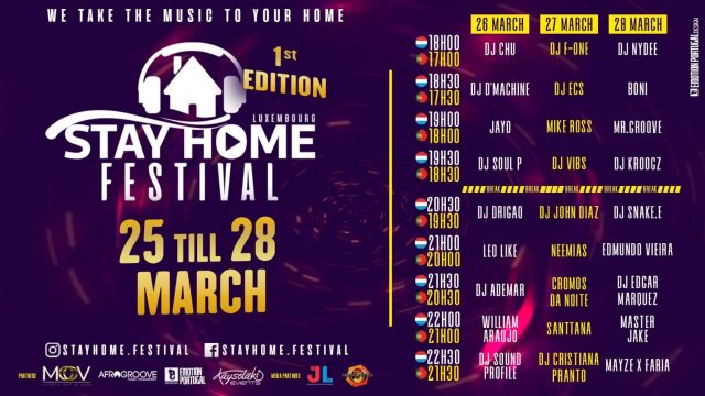 Fiquem atentos ao Facebook Official do Festival https://www.facebook.com/stayhome.festival e ao Jornal do Luxemburgo,para saberem todas as Novidades.