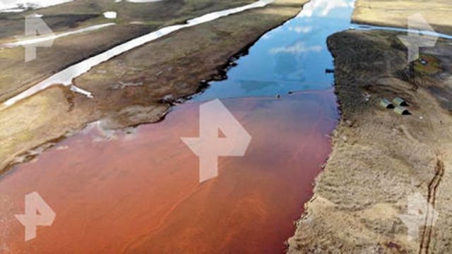 Imagens de satélite publicadas por esta organização não-governamental (ONG) mostram grandes áreas vermelhas, causadas pelo combustível, cobrindo um rio local, o Ambarnaia.