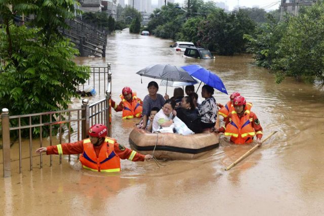Em Hubei, onde o vírus foi descoberto no ano passado, as chuvas também estão a provocar grandes inundações.
