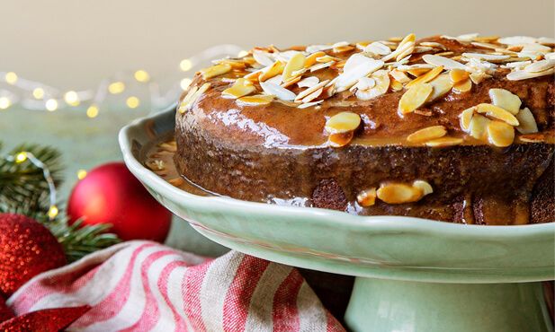 6. Depois do bolo desenformado, pique com um palito e regue com a cobertura.