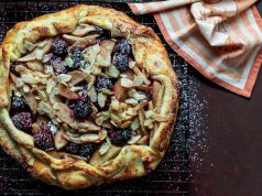 5. Entretanto, prepare a cobertura. Numa caçarola, caramelize o açúcar com o sumo de limão. Quando estiver louro, adicione o creme vegetal e o leite, mexendo sempre. Junte a amêndoa.