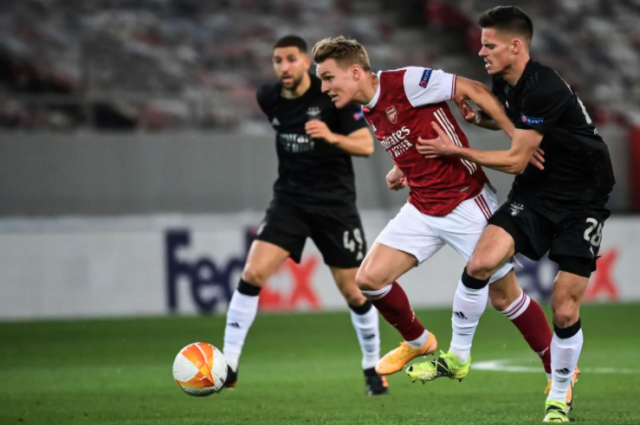 No entanto, o Arsenal acabou por marcar por mais golos, por Kieran Tierney, aos 67, e de novo por Aubameyang, aos 87, que ‘bisou’ na partida e garantiu o apuramento da equipa inglesa para a fase seguinte da Liga Europa.