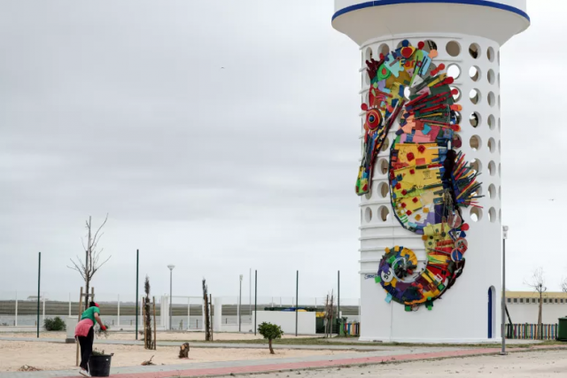 Elaboradas a partir de lixo e desperdício, como é assinatura do artista, uma das esculturas fica situada no depósito de água do parque de campismo da Praia de Faro e a outra está instalada na lateral de um dos edifícios do ‘campus’ de Gambelas da Universidade do Algarve (UAlg).