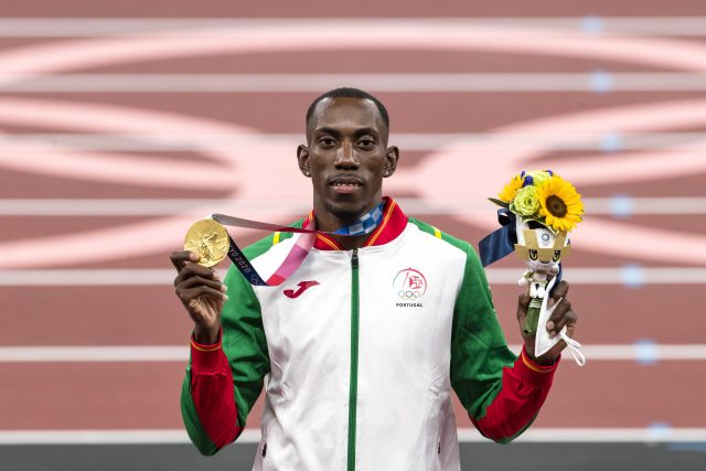 O atleta do Benfica venceu o concurso com um salto de 17,98 metros, conquistando a primeira medalha de ouro para Portugal em Tóquio2020, depois da prata de Patrícia Mamona, na prova feminina do triplo salto, e do bronze do judoca Jorge Fonseca (-100 kg) e do canoísta Fernando Pimenta (K1 1.000).