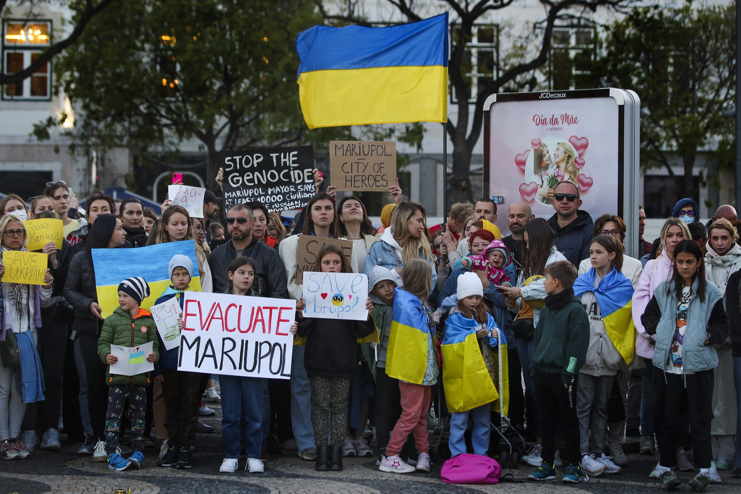 Cerca de três centenas de pessoas, a maioria ucranianas, juntaram-se hoje em Lisboa para alertar para a situação em Mariupol, cidade ucraniana cercada pelas tropas russas que invadiram o país.