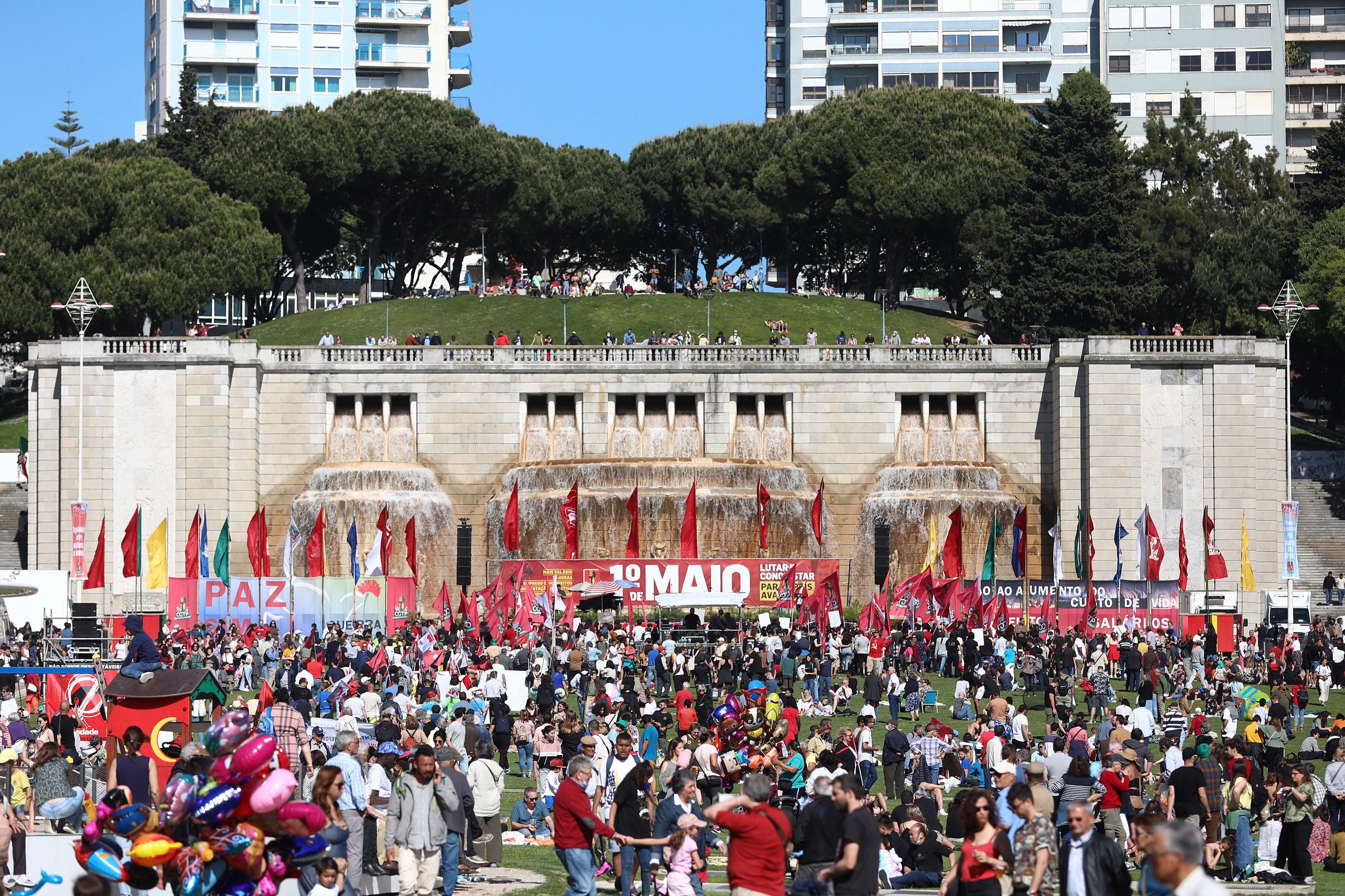 Milhares de pessoas concentraram-se no Martim Moniz, em Lisboa, cerca das 14:30 e partiram rumo à Alameda, pouco depois, no âmbito das celebrações do 1.º de Maio da CGTP.