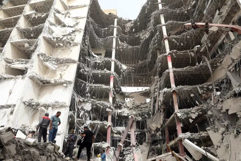 Na segunda-feira, o edifício Metropol, de 10 andares, em construção numa das principais ruas de Abadan, cidade da província de Khouzestan ficou parcialmente destruído após a derrocada.