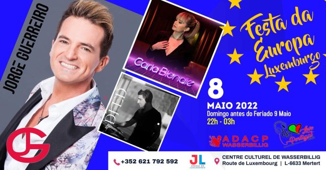 O cantor português que recentemente venceu o Big Brother dos famosos num canal televisivo vai regressar no próximo domingo, 8 de maio ao Luxemburgo e a Wasserbillig. Jorge Guerreiro irá participar na Festa da Europa na companhia da também portuguesa Carla Blondie. A Festa organizada pela ADACP também será animada pelo DJ ED.