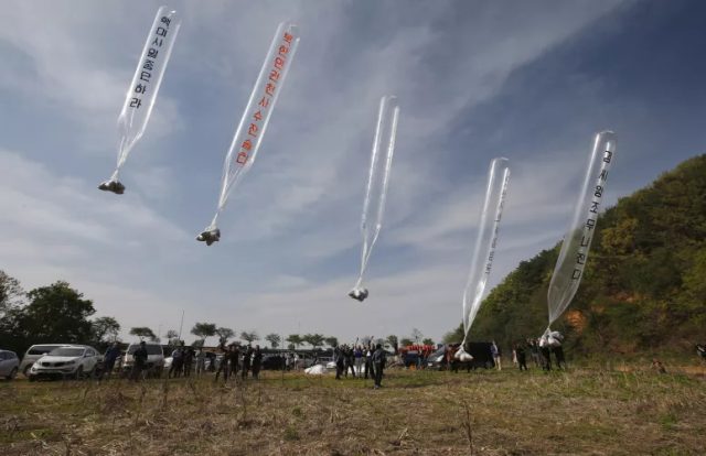 Há anos que ativistas enviam balões através da fronteira para distribuir centenas de milhares de folhetos de propaganda críticos do líder norte-coreano Kim Jong-un.