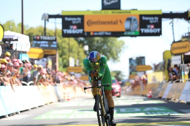 Van Aert cumpriu os 40,7 quilómetros entre Lacapelle-Marival e Rocamadour em 47.59 minutos, sendo 19 segundos mais rápido do que o seu companheiro de equipa, segundo e virtual vencedor do Tour, e 27 do que o esloveno Tadej Pogacar (UAE Emirates), terceiro.
