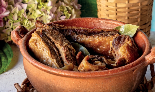 Coloque a carne no tacho, alternando com uma camada de cebola, alho, louro e toucinho. No final, cubra a carne com o vinho e um pouco de água.
