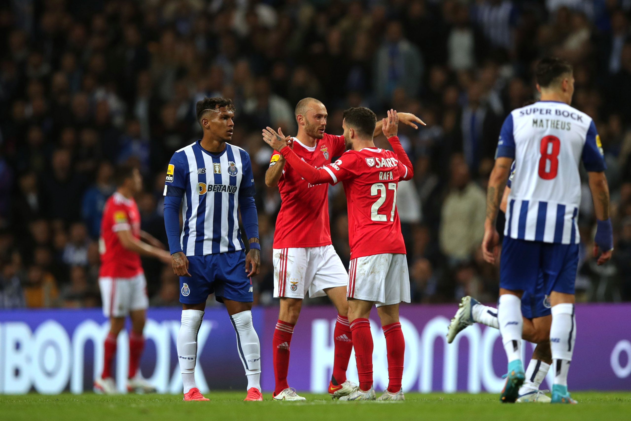 Num encontro em que jogou em superioridade numérica desde os 27 minutos, depois da expulsão de Eustáquio, o Benfica marcou o único golo da partida aos 72 minutos, por Rafa.