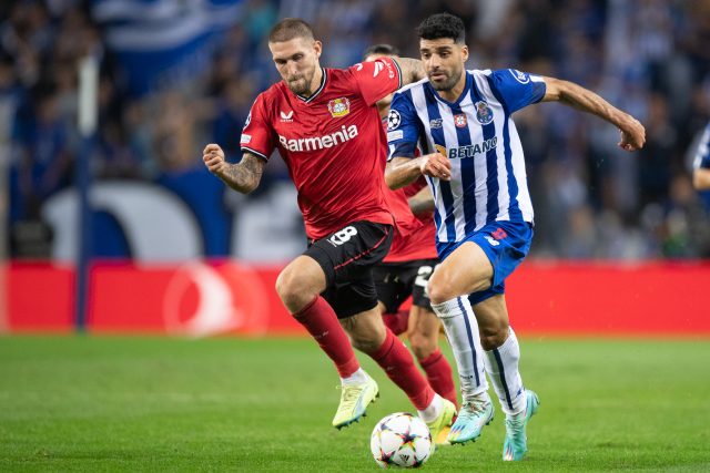 Início Futebol Liga dos Campeões LC: FC Porto - Bayer Leverkusen (0-0 ao intervalo) AtualidadeDesportoFutebolLiga dos Campeões LC: FC Porto - Bayer Leverkusen (0-0 ao intervalo) Por jdLux - 04/10/2022, 22:13 7 0 FC Porto's Taremi (R) in action against Bayer Leverkusen's Andrich during their Champions League soccer match at Dragao stadium, Porto, Portugal, 04 October 2022. RUI MANUEL FARINHA/LUSA Publicidade