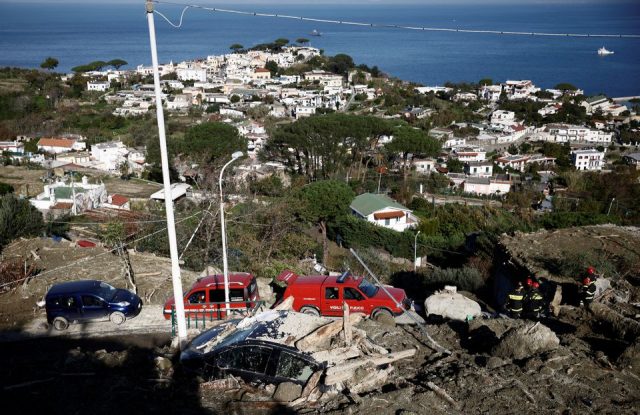 Uma parte do monte Epomeo cedeu e atingiu várias casas, que estão a ser revistadas com grande esforço e dificuldade por equipas de emergência, reforçadas com unidades vindas de Nápoles e de outros pontos, e das Forças Armadas.