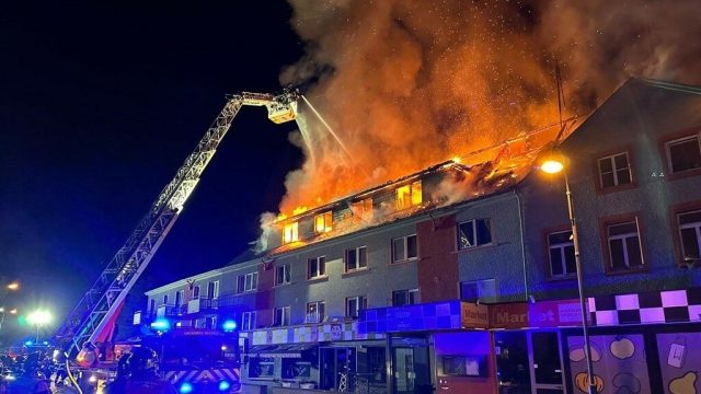 Um incêndio deflagrou e destruiu uma unidade hoteleira em Grundhof, perto da fronteira com a Alemanha na noite desta quarta-feira.