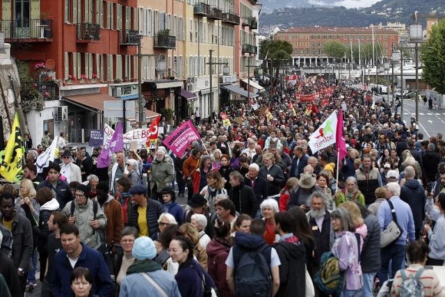 Os sindicatos convocaram mais de 300 protestos e manifestações em todo o país apesar de a reforma – que passa para os 64 anos de idade – ter sido aprovada. No total, estima-se que 1,5 milhões de pessoas possam juntar-se às manifestações.