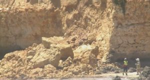 Três escavadoras vão remover escombros da derrocada na praia Maria Luísa