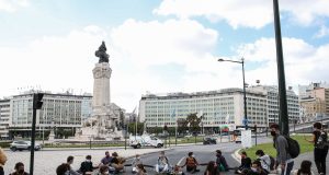Dezenas de manifestantes pelo clima bloqueiam rotunda do Marquês de Pombal...