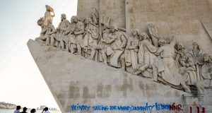 Padrão dos Descobrimentos vandalizado com mensagem de 20 metros